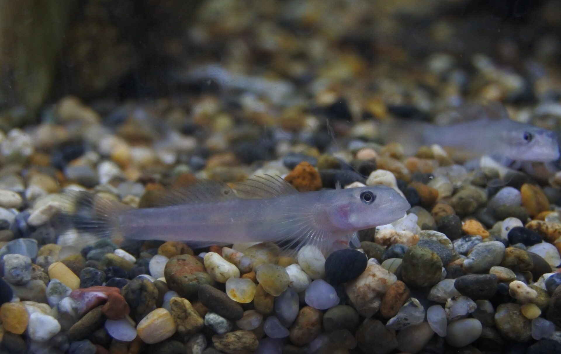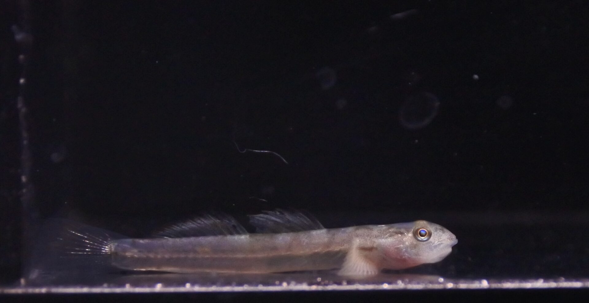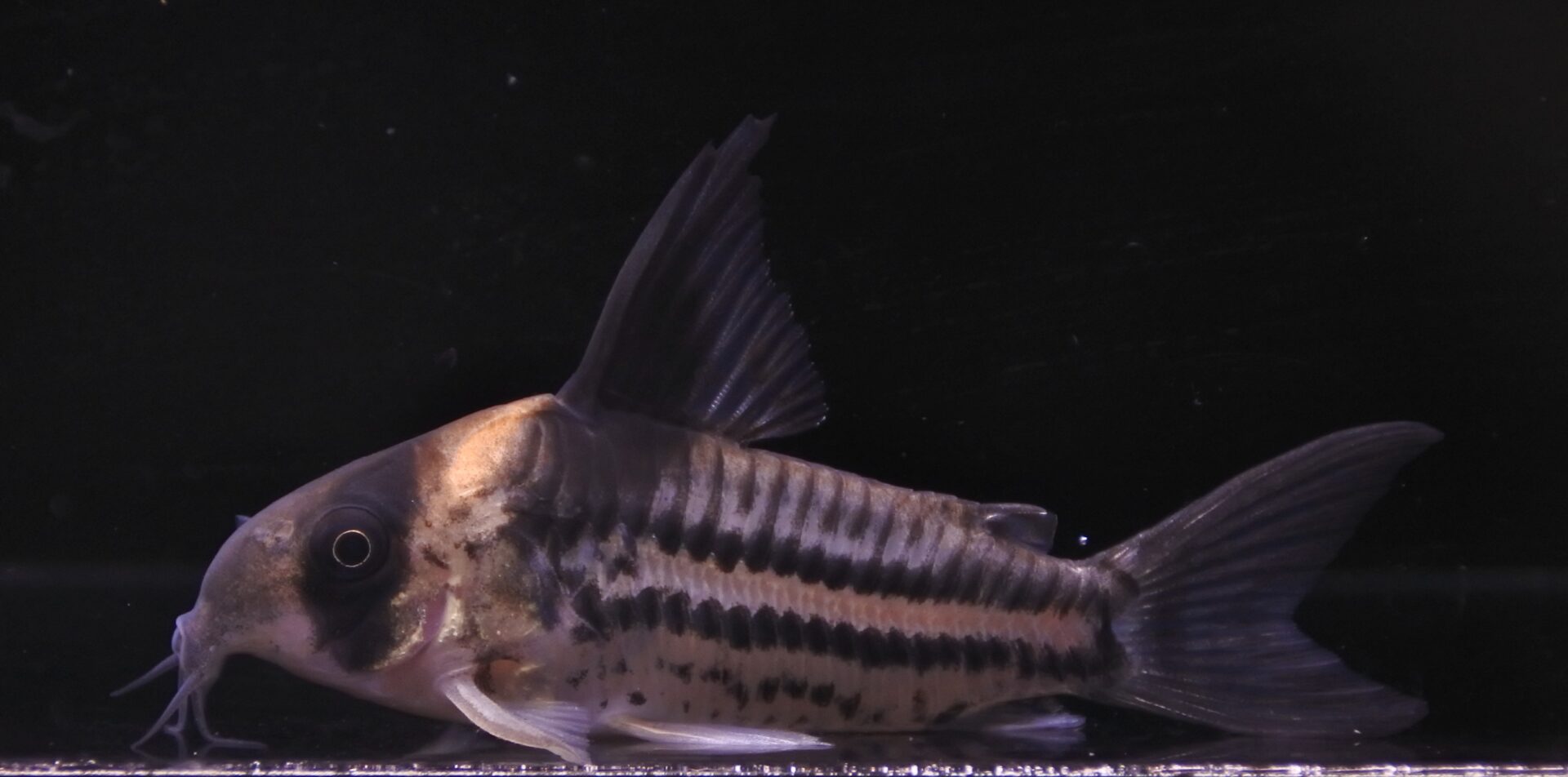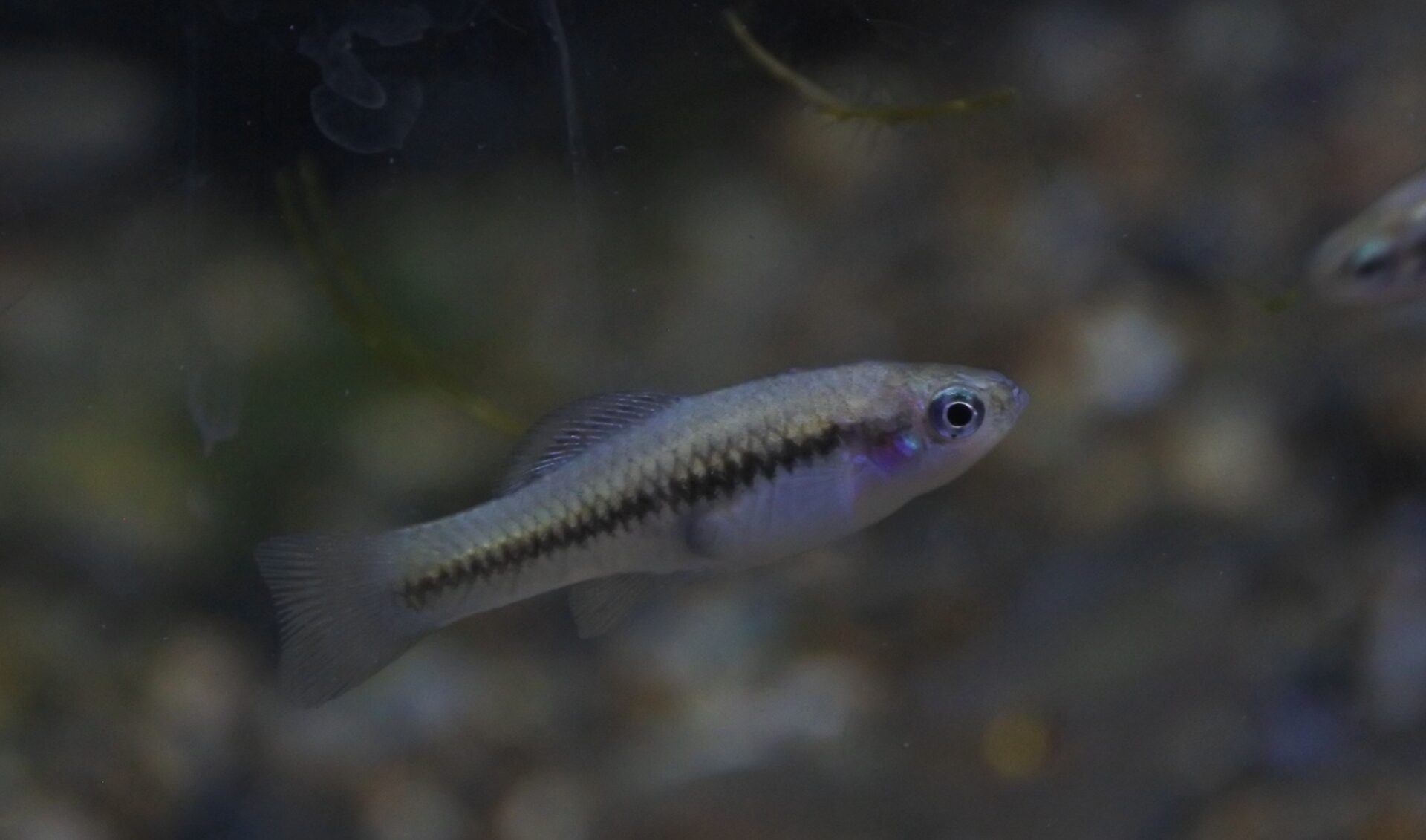 背鰭と尻鰭のオレンジエッジが美しい真胎生メダカ。