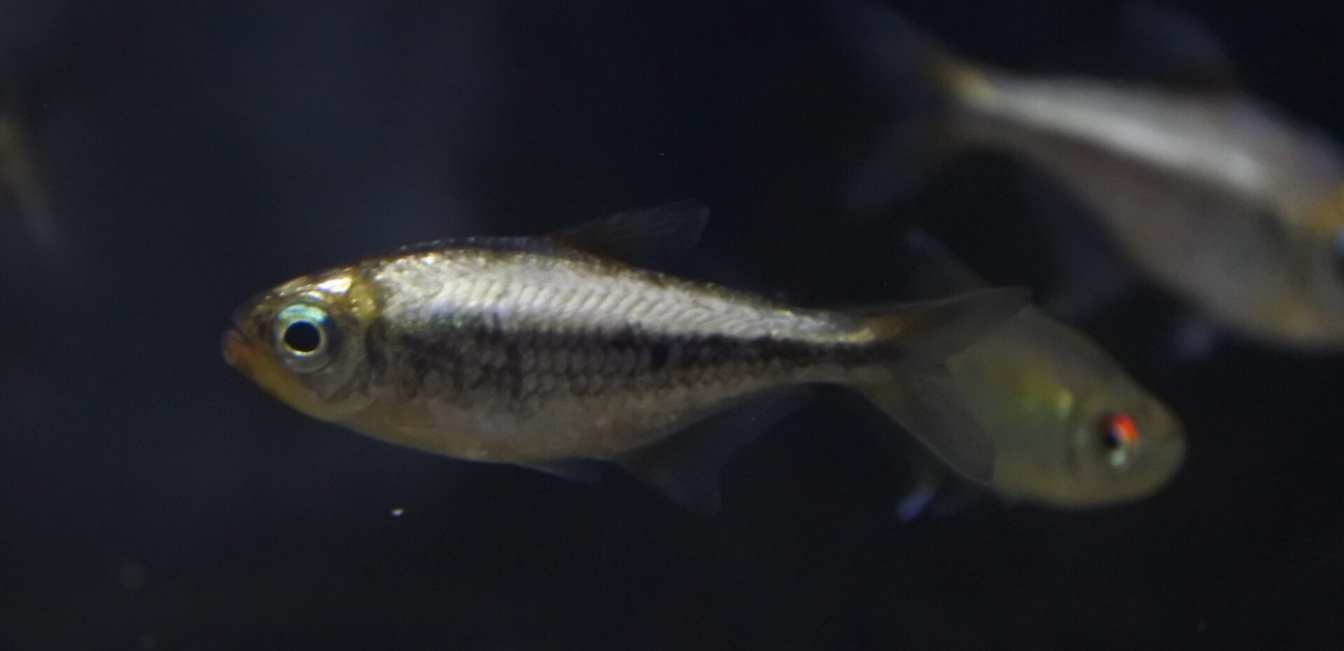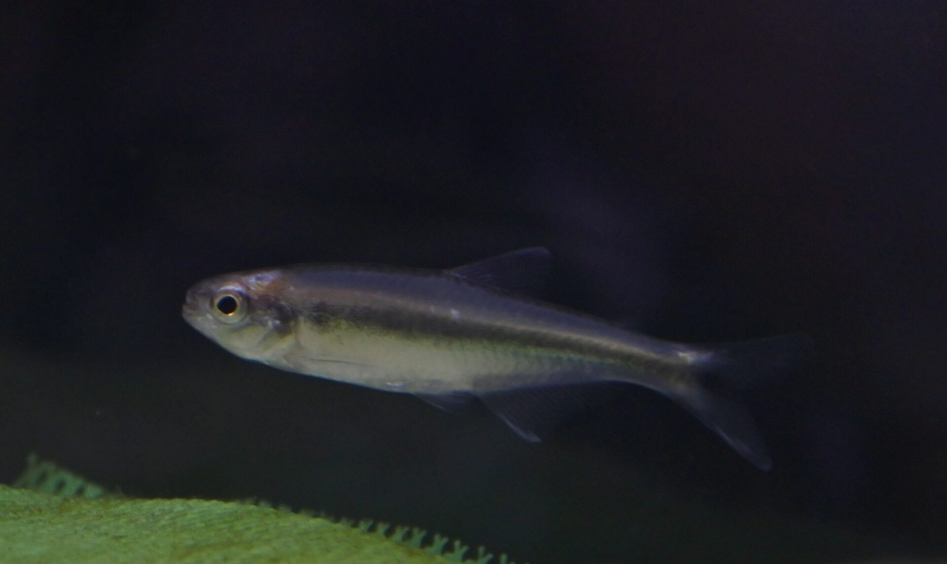 ↑グリーンメタリックパーキンソンが来る予定だったのですが開けて見たら似た別物のカラシンでした。グリーンメタリックパーキンソンだと緑の側線の下に湾曲した黒ラインが入るのですが、今回の個体はそれがありません。