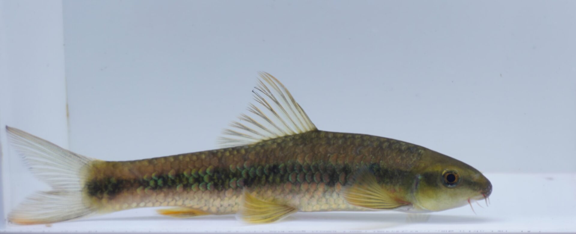 モスグリーンな渋い側線と薄っすら赤い鰭が綺麗。