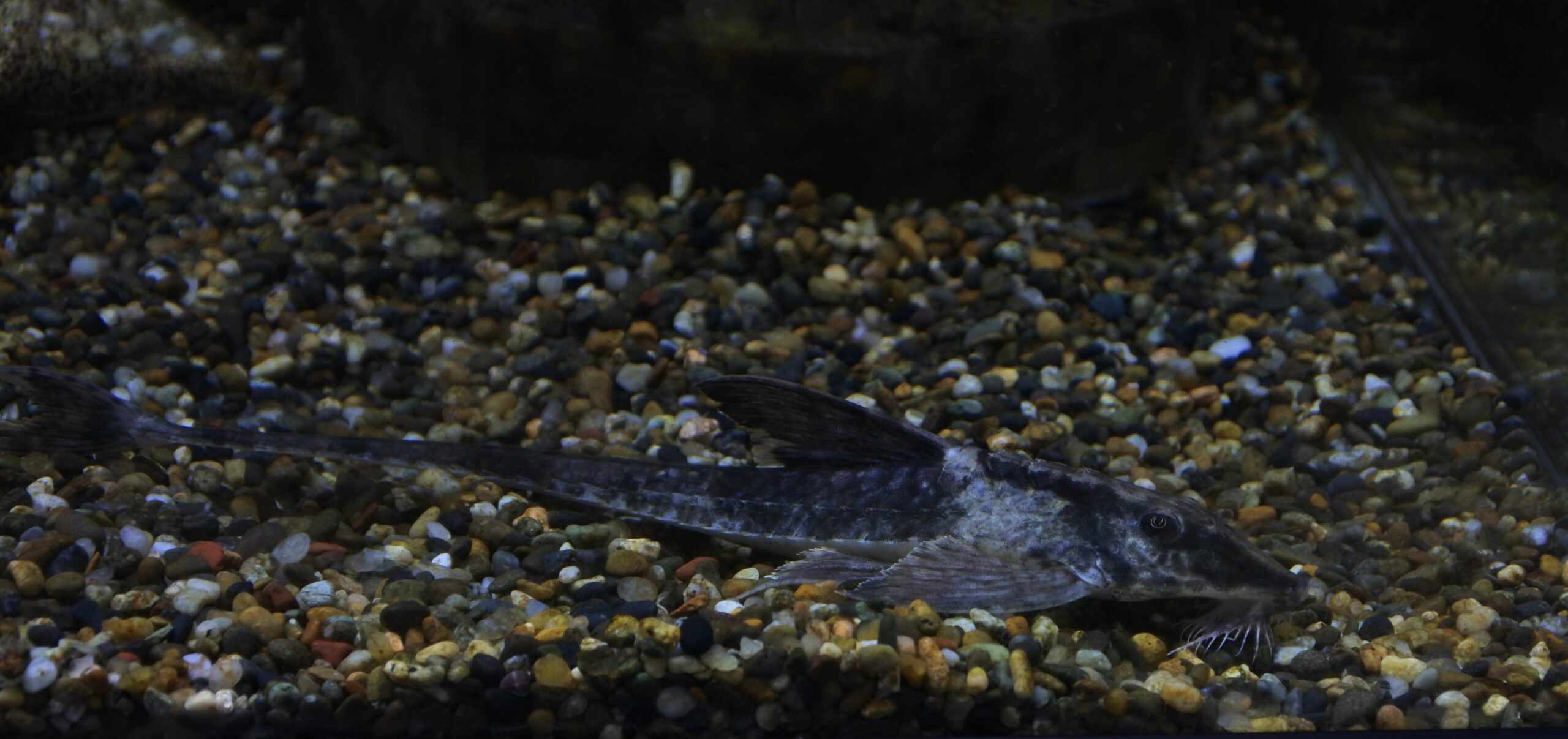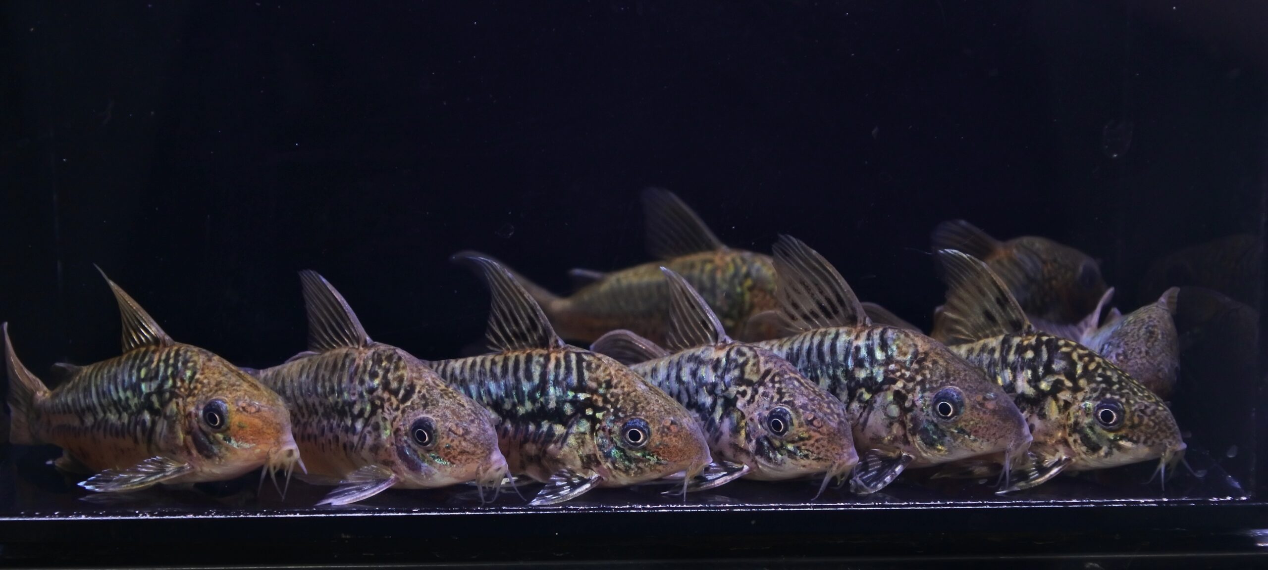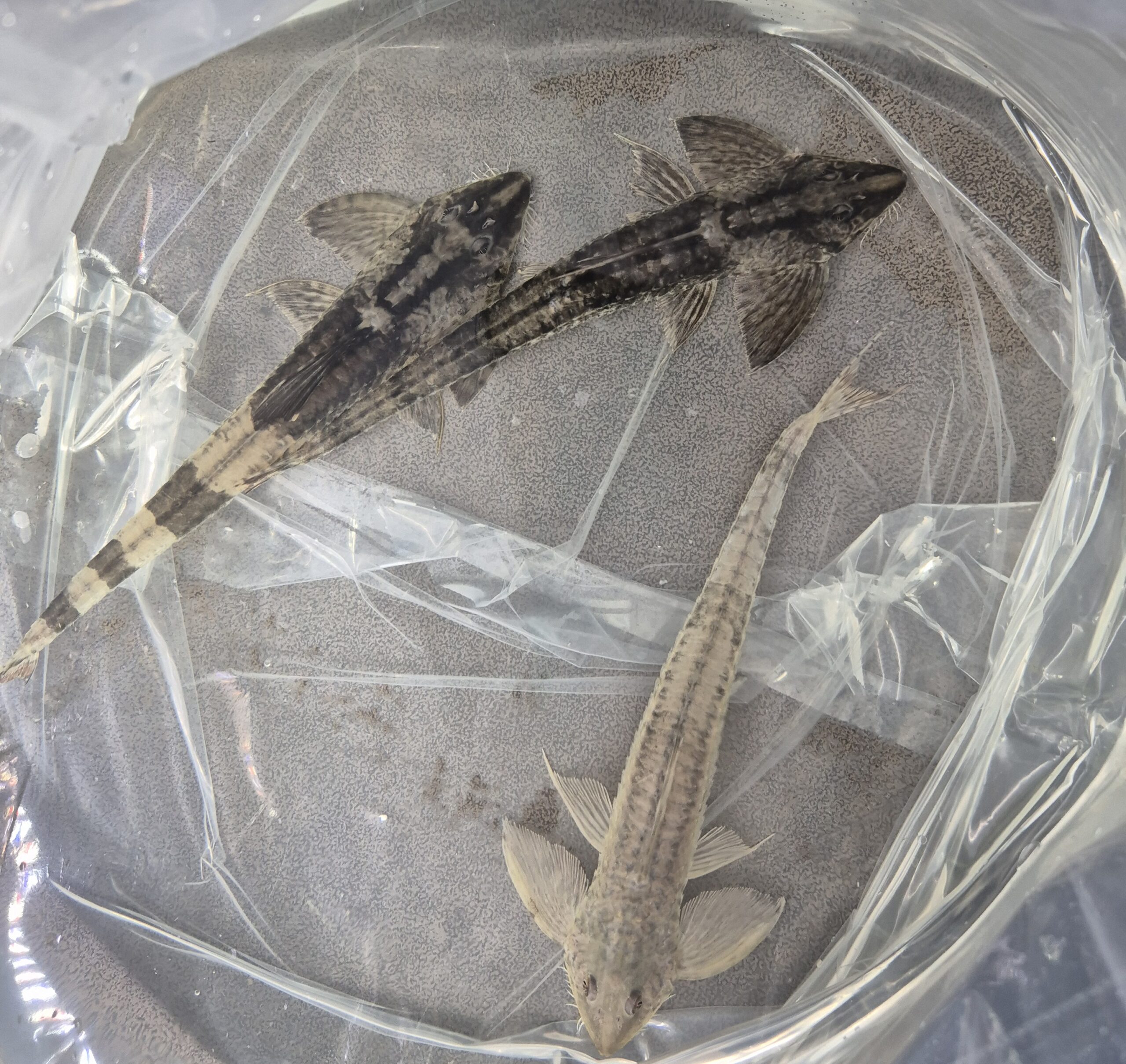 今回着状態良く輸入されたようですが、念のため1週間程仕入れ先で様子を見てもらってました。メタリック感が美しい小型ナマズですね。