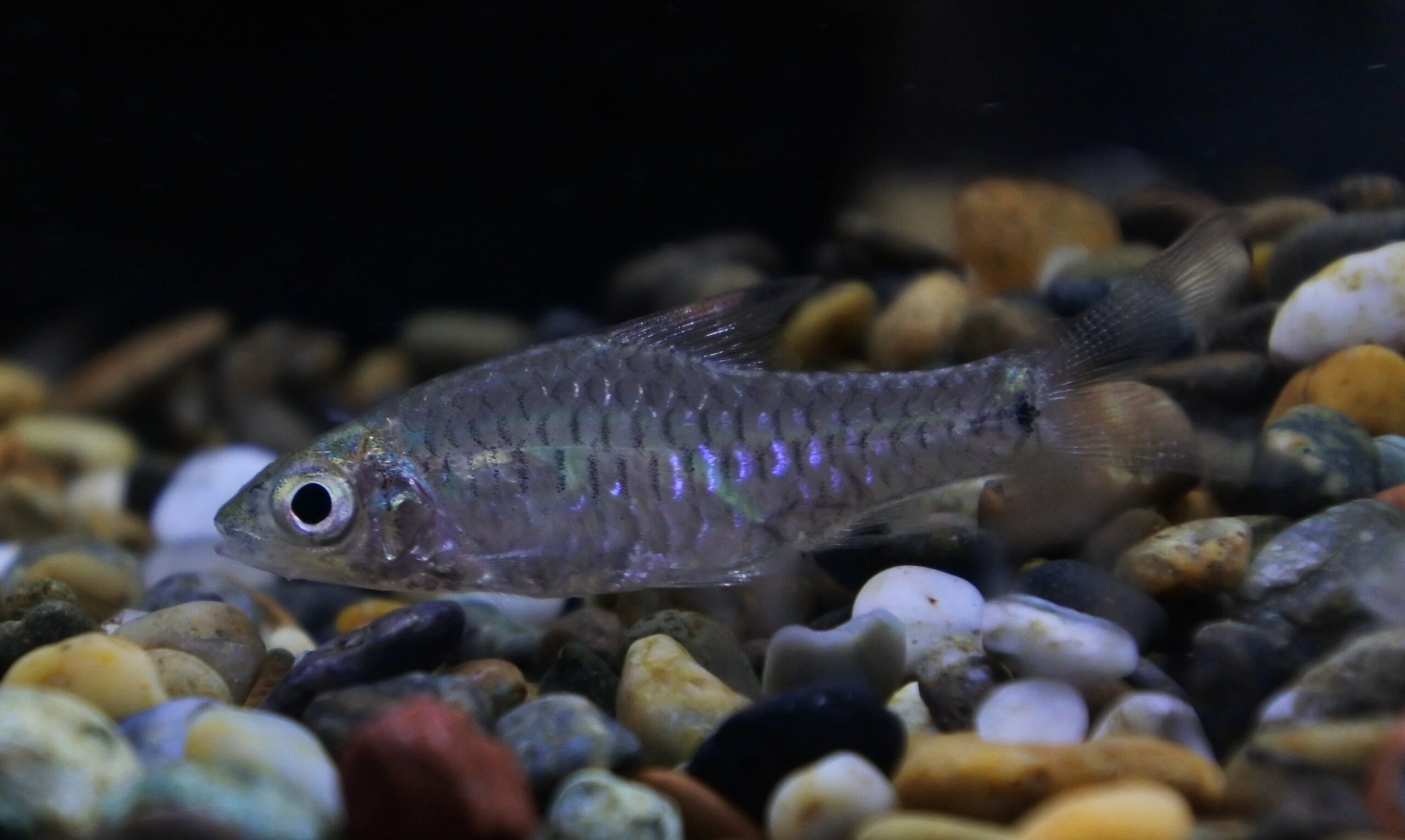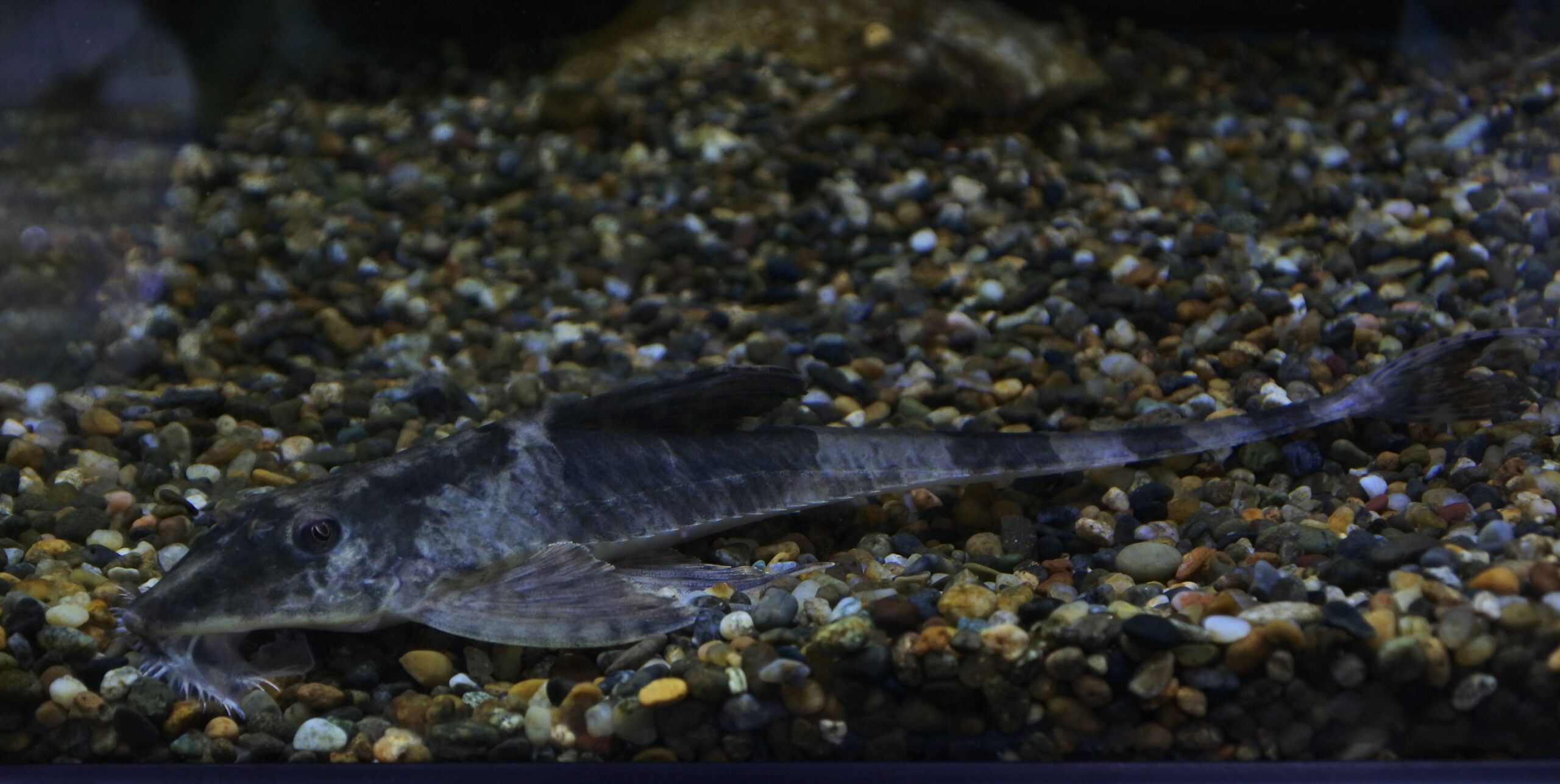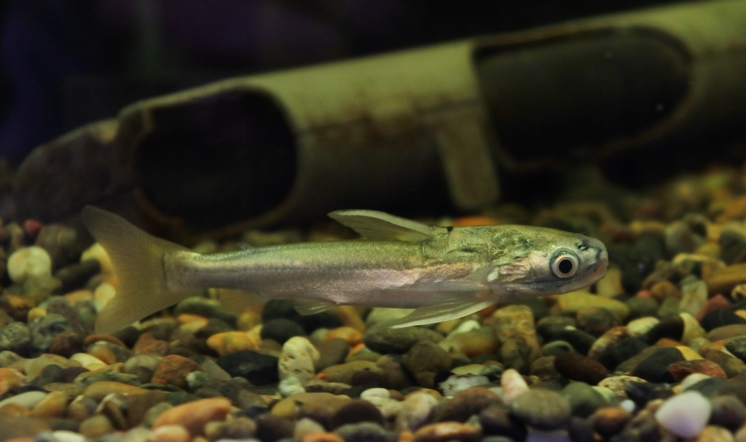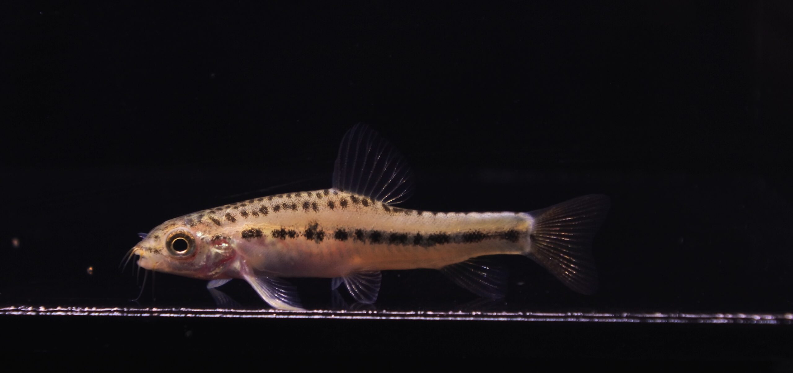 今回着状態良く輸入されたようですが、念のため1週間程仕入れ先で様子を見てもらってました。メタリック感が美しい小型ナマズですね。