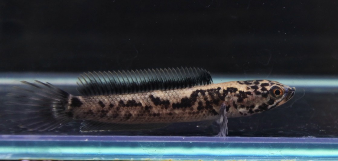 スポットではなく柄がべったりと墨のように入った個体。背鰭にも黒がべったり入ってます。