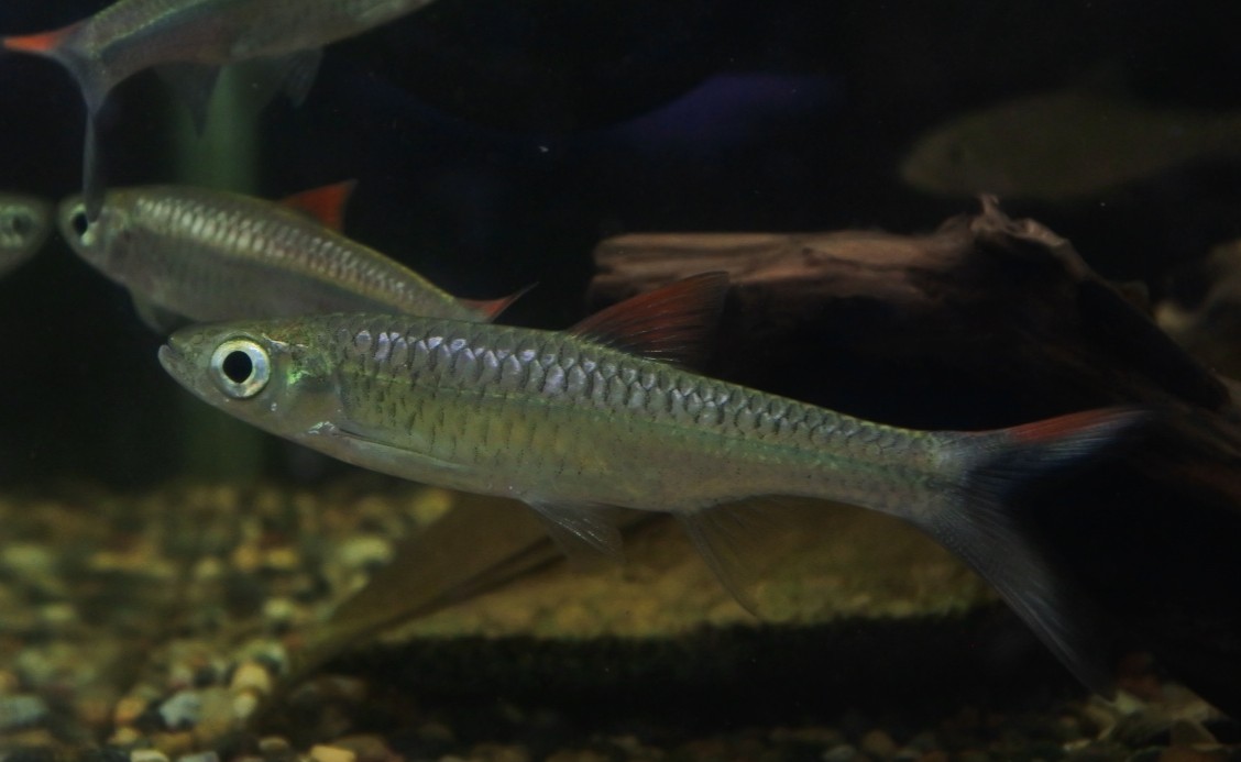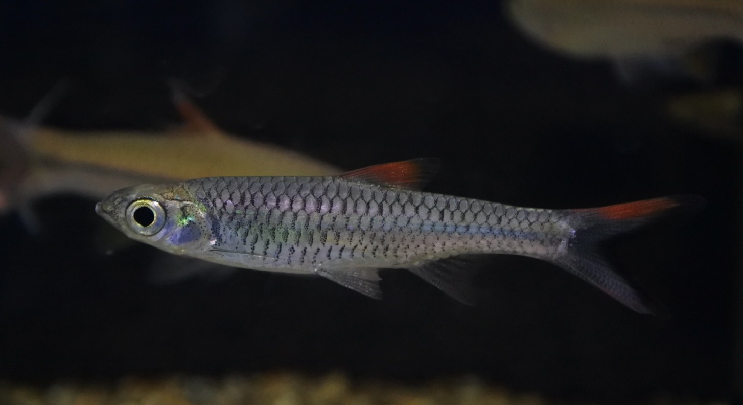 赤い鰭と尾鰭のブラックエッジが派手な種です。