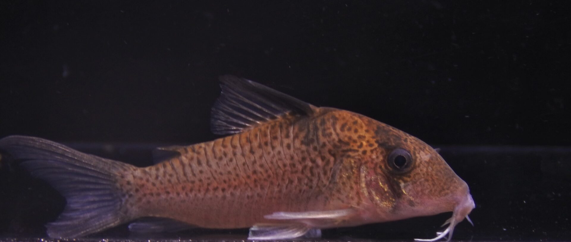 肩口の黒班とボディのミストスポットが美しいスリナムロングなコリドラス。
